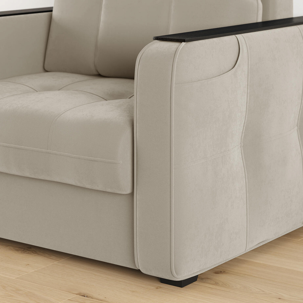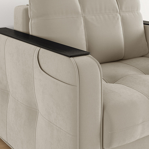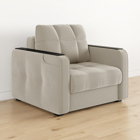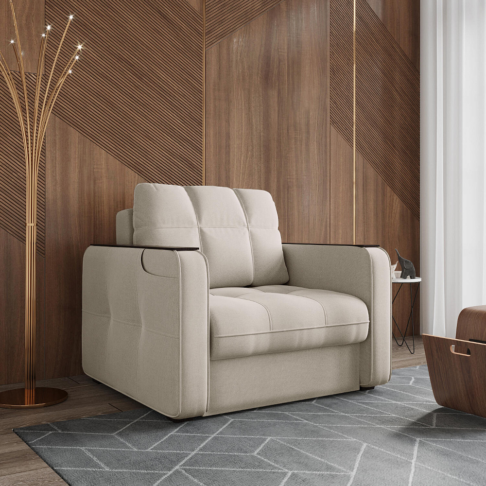 Кресло-кровать «Киль» подойдёт любителям посидеть с чашечкой кофе перед телевизором. Помимо односпального места и бельевого ящика модель оснащена накладками на подлокотниках, на которые удобно поставить кружку. Также на подлокотнике есть карман, чтобы смартфон или книга были всегда под рукой. Многофункциональное кресло не перегружено декором, поэтому подойдёт к большинству современных интерьеров.