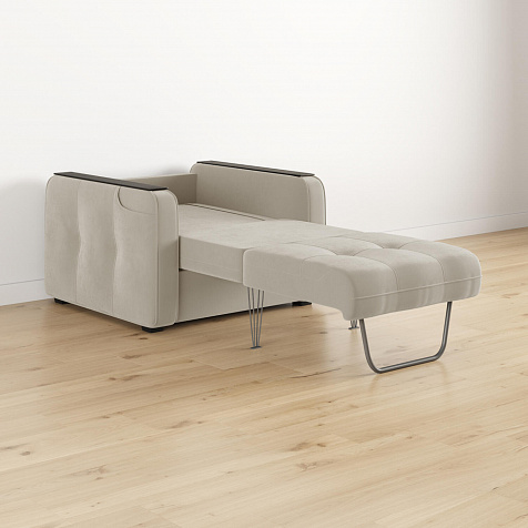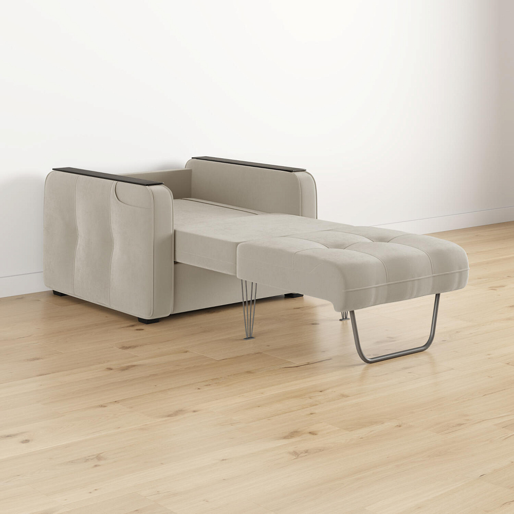 Односпальное место. Кресло раскладывается в односпальную кровать с помощью механизма трансформации «Каскад». Полноценная кровать прекрасно подойдёт в качестве гостевого варианта.