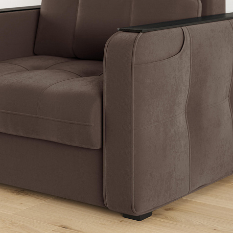 Кресло-кровать «Киль» подойдёт любителям посидеть с чашечкой кофе перед телевизором. Помимо односпального места и бельевого ящика модель оснащена накладками на подлокотниках, на которые удобно поставить кружку. Также на подлокотнике есть карман, чтобы смартфон или книга были всегда под рукой. Многофункциональное кресло не перегружено декором, поэтому подойдёт к большинству современных интерьеров.