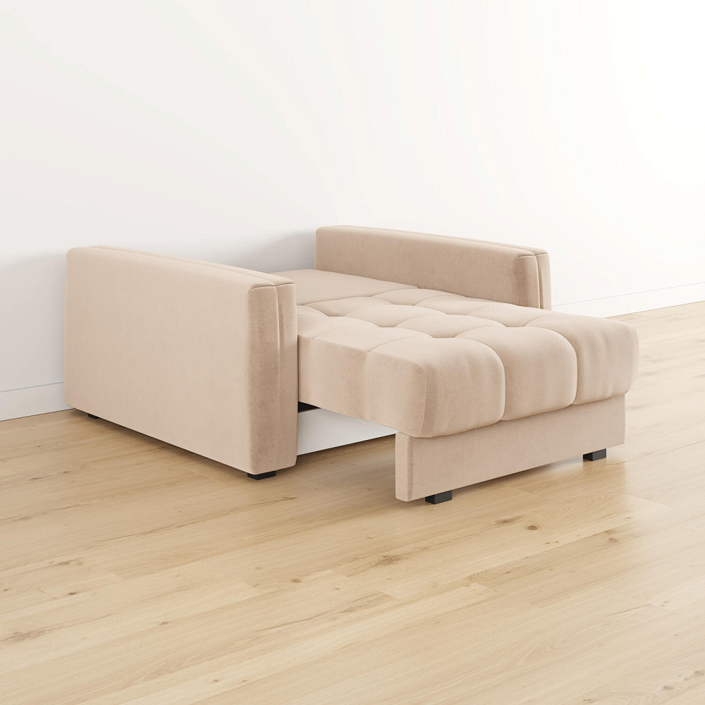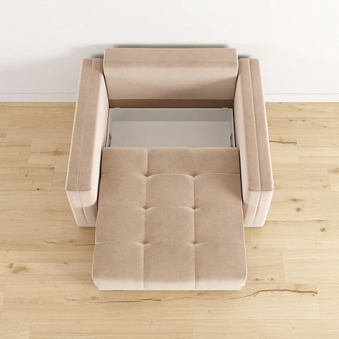 - Обивка из велюра. Обивка кресла-кровати выполнена из стильной и приятной на ощупь ткани, которая отлично пропускает воздух, хорошо тянется, устойчива к истиранию и выцветанию.