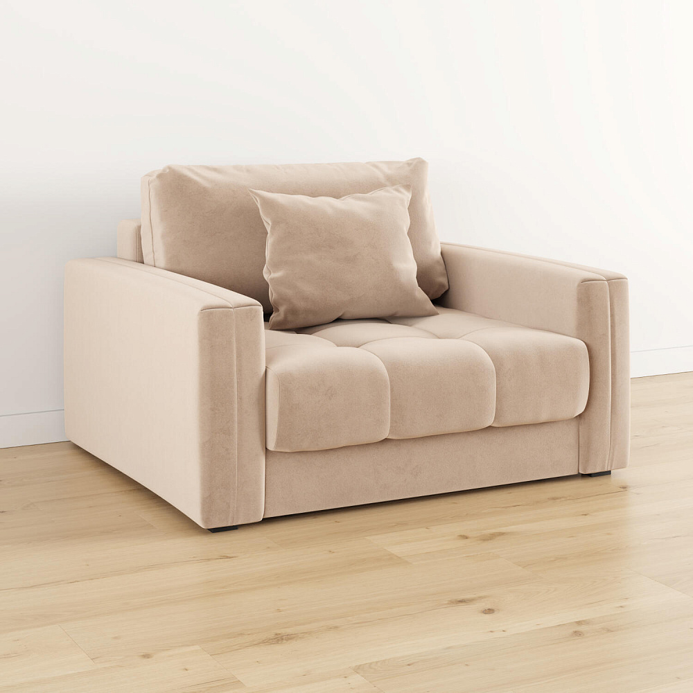 Кресло-кровать «Дензел» — лучшее сочетание компактности и функциональности в современном стиле. Кресло обладает глубокой посадкой, а подушки позволяют создать удобное место для отдыха. Спинка модели выполнена в обивочной ткани, что позволяет использовать кресло-кровать для зонирования комнаты.