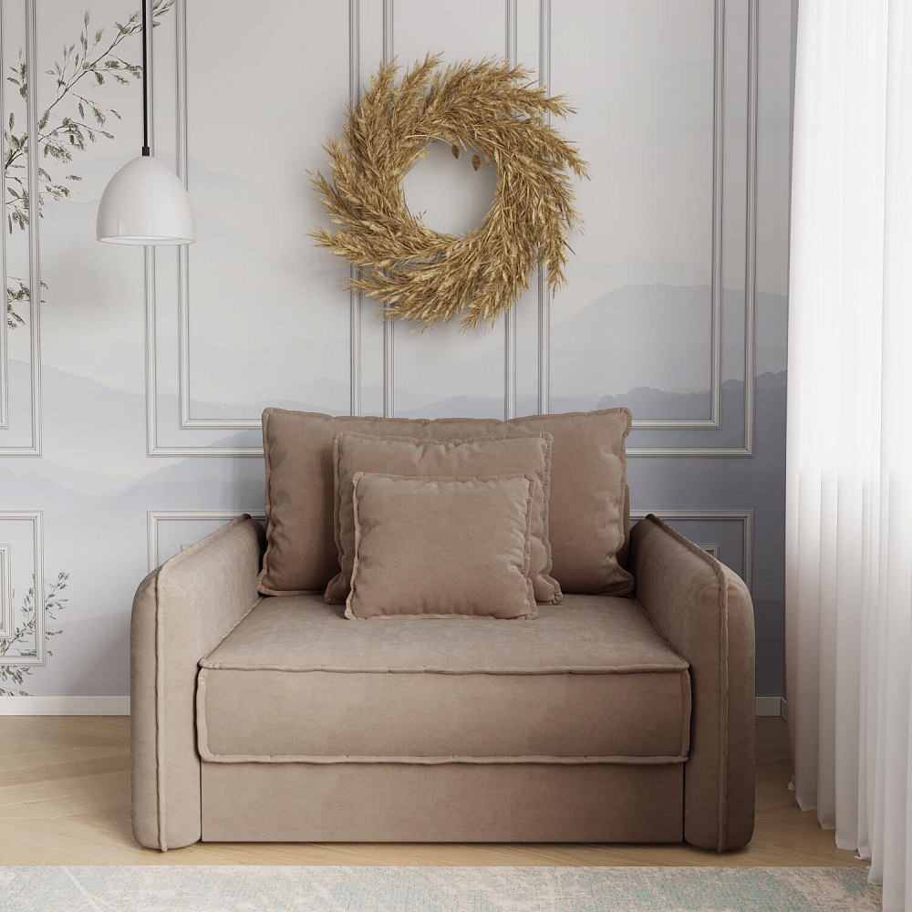 Кресло-кровать «Кросби» — это сочетание комфорта, уюта и компактности в современном стиле. Кресло обладает глубокой посадкой, а приспинная и декоративные подушки разных размеров позволяют создать удобное место для отдыха. Элегантно выглядят узкие мягкие подлокотники с объёмным кантом.