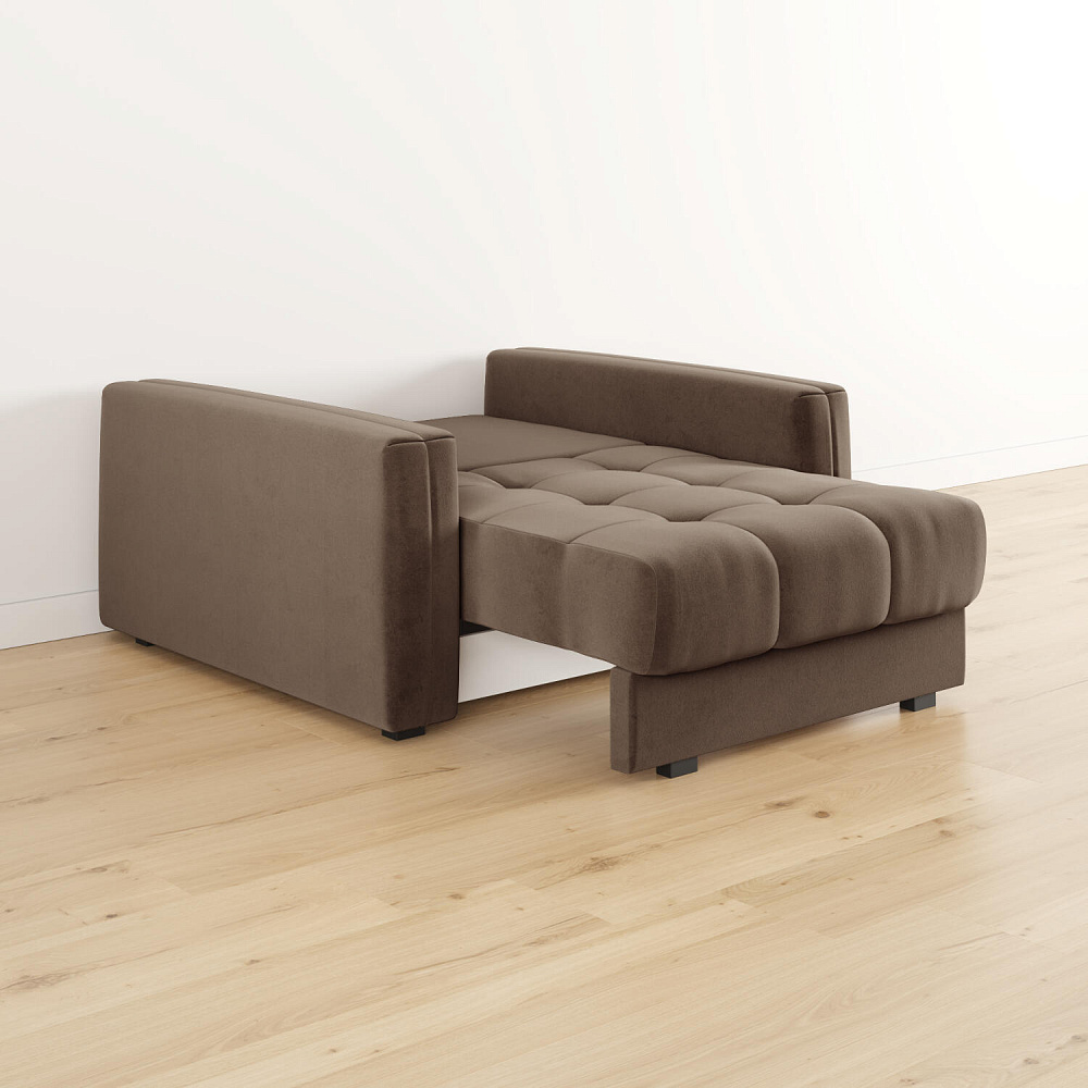 - Обивка из велюра. Обивка кресла-кровати выполнена из стильной и приятной на ощупь ткани, которая отлично пропускает воздух, хорошо тянется, устойчива к истиранию и выцветанию.