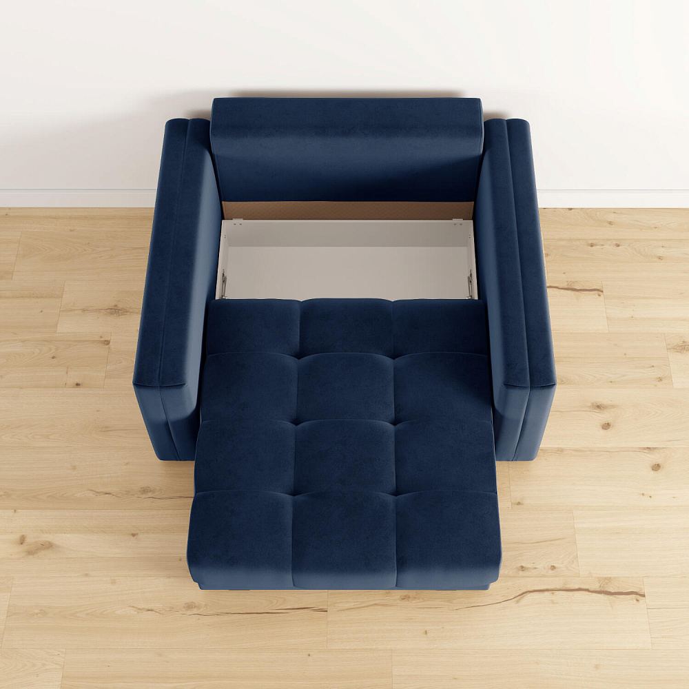 - Обивка из велюра. Обивка кресла-кровати выполнена из стильной и приятной на ощупь ткани, которая отлично пропускает воздух, хорошо тянется, устойчива к истиранию и выцветанию.