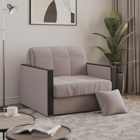 Кресло-кровать «Бристоль» подойдет ценителям стильной и функциональной мебели. Модель оснащена накладками на подлокотниках, на которые удобно положить ТВ-пульт или смартфон. Благодаря механизму трансформации «Аккордеон» модель легко превращается в полноценную одноместную кровать. Пропорциональные формы, плавные линии декоративного канта подчеркивают лаконичный дизайн, поэтому диван подойдет для любого современного интерьера.