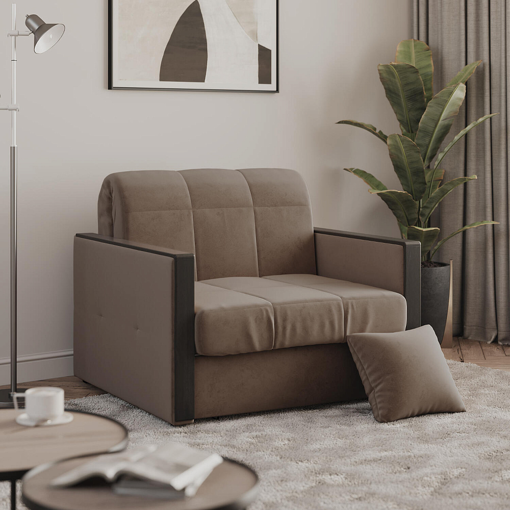 Кресло-кровать «Бристоль» подойдет ценителям стильной и функциональной мебели. Модель оснащена накладками на подлокотниках, на которые удобно положить ТВ-пульт или смартфон. Благодаря механизму трансформации «Аккордеон» модель легко превращается в полноценную одноместную кровать. Пропорциональные формы, плавные линии декоративного канта подчеркивают лаконичный дизайн, поэтому диван подойдет для любого современного интерьера.
