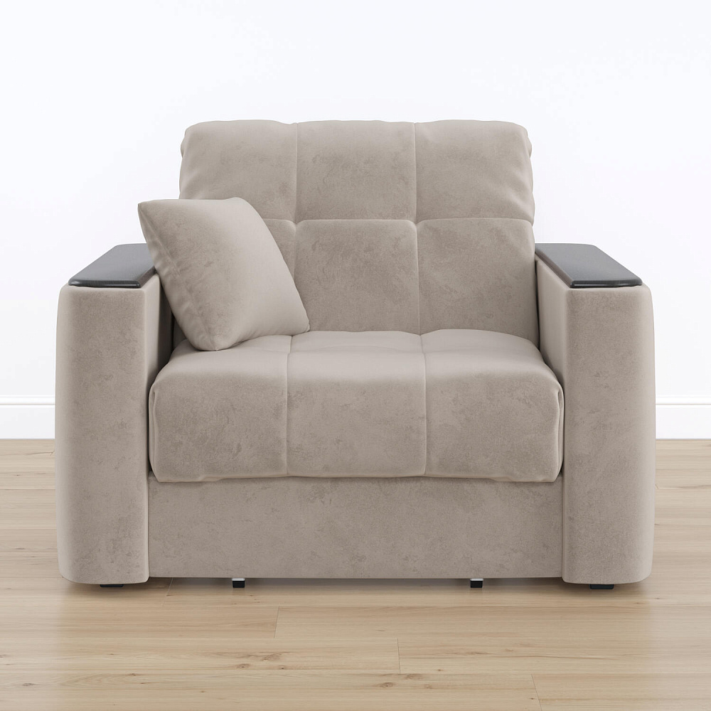 Кресло-кровать «Камелот» — лучшее сочетание комфорта, уюта и компактности в современном стиле. Модель в лаконичном дизайне поможет оформить уютную и удобную зону для сна и отдыха в небольших гостиных, спальнях или детских комнатах. Изюминкой модели являются деревянные накладки на подлокотниках, на которых можно разместить пульт от телевизора или чашку чая.