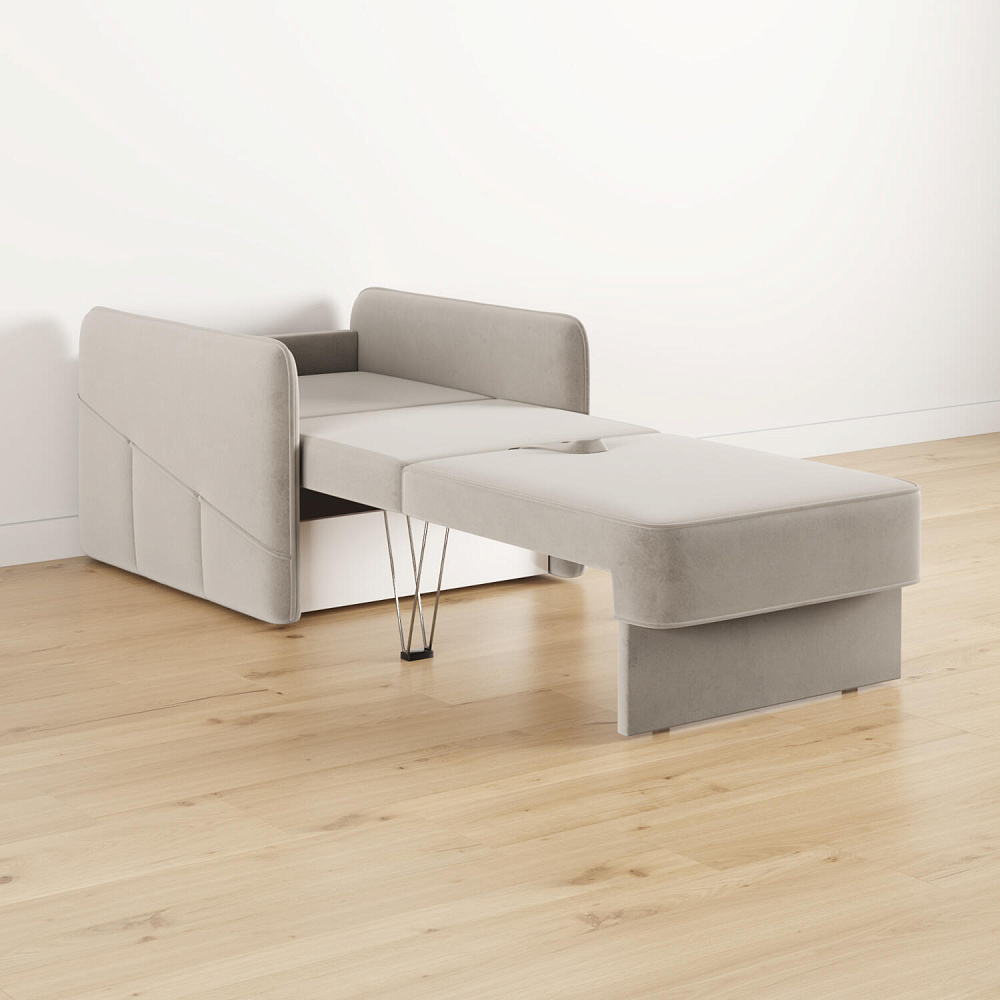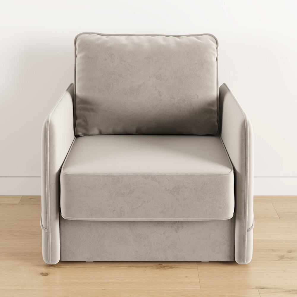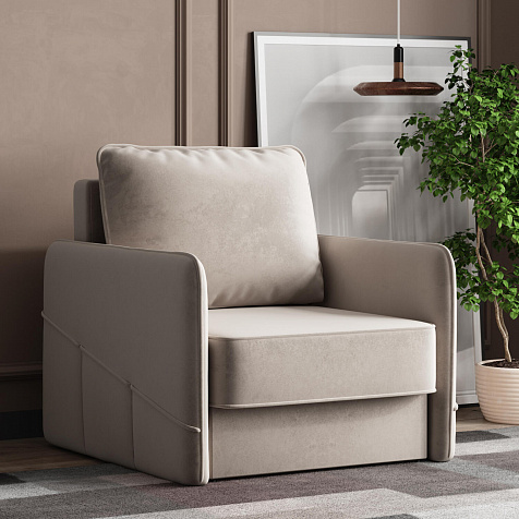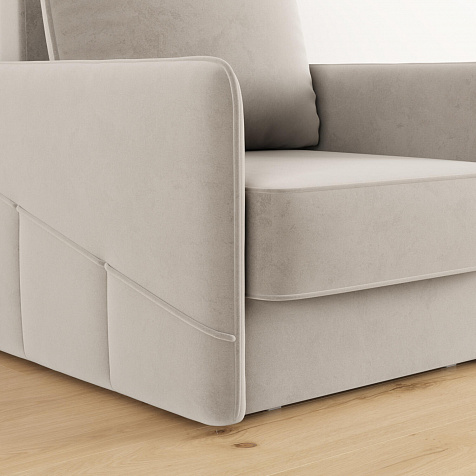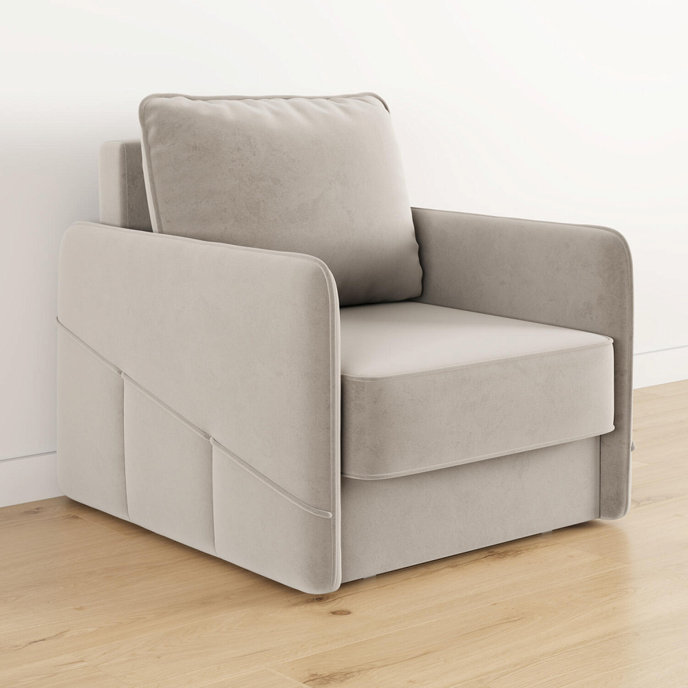 Стильное кресло «Симпл» с узкими подлокотниками станет ярким акцентом в современной гостиной. Кант из мягкого велюра придаёт дизайну завершённый вид, подчёркивает мягкую геометричность. В комплектацию входит большая задняя подушка, позволяющая корректировать глубину посадки. Механизм трансформации «Еврокнижка» обеспечит комфортное, ровное спальное место.