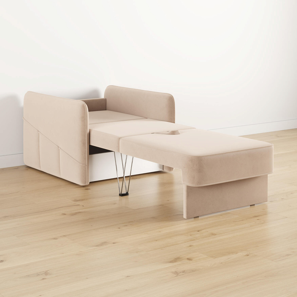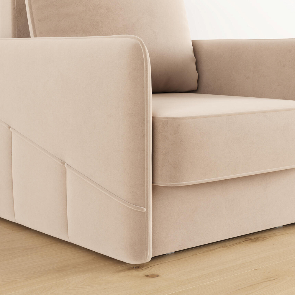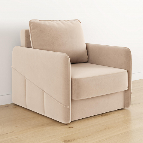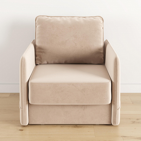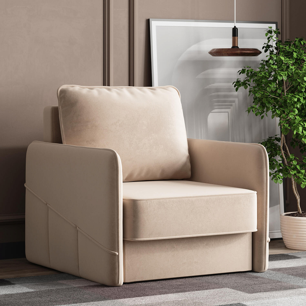 Стильное кресло «Симпл» с узкими подлокотниками станет ярким акцентом в современной гостиной. Кант из мягкого велюра придаёт дизайну завершённый вид, подчёркивает мягкую геометричность. В комплектацию входит большая задняя подушка, позволяющая корректировать глубину посадки. Механизм трансформации «Еврокнижка» обеспечит комфортное, ровное спальное место.