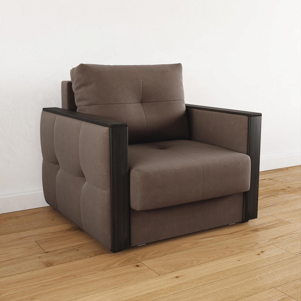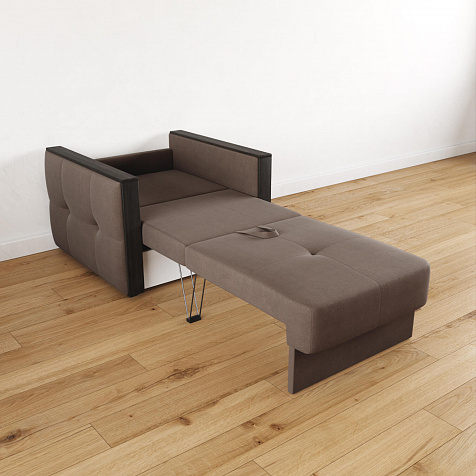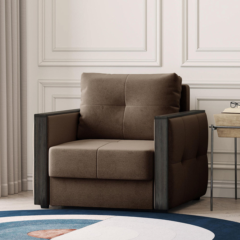 Стильное кресло «Винг» объединяет строгие геометрические формы и максимальный комфорт. Прямые подлокотники можно использовать в качестве мини-столешницы для небольших предметов. Кресло сочетает в себе полноценное односпальное место, которое экономит пространство за счет особенности раскладного механизма «Еврокнижка».
