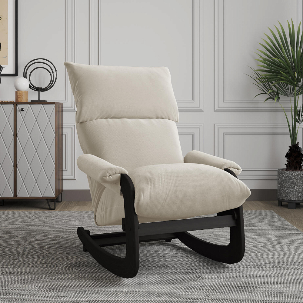 Мягкое кресло-качалка «Тиволи» с регулировкой угла наклона создаст уютное место для отдыха как в квартире, так и в загородном доме. Элегантный дизайн модели отличается объемными формами спинки и сиденья, компактными подлокотниками и лакированным каркасом. Обивка выполнена из плотного и приятного на ощупь велюра. За счет простого откидного механизма, спинка может принять полугоризонтальное положение для более комфортного отдыха.
