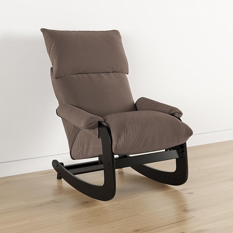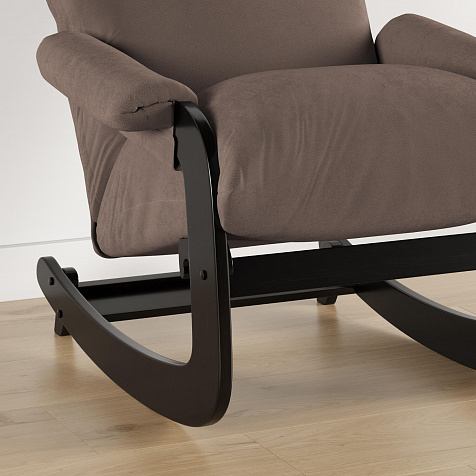 Оснащено механизмом качания. Достаточно поднять фиксирующую планку и кресло трансформируется в качалку.