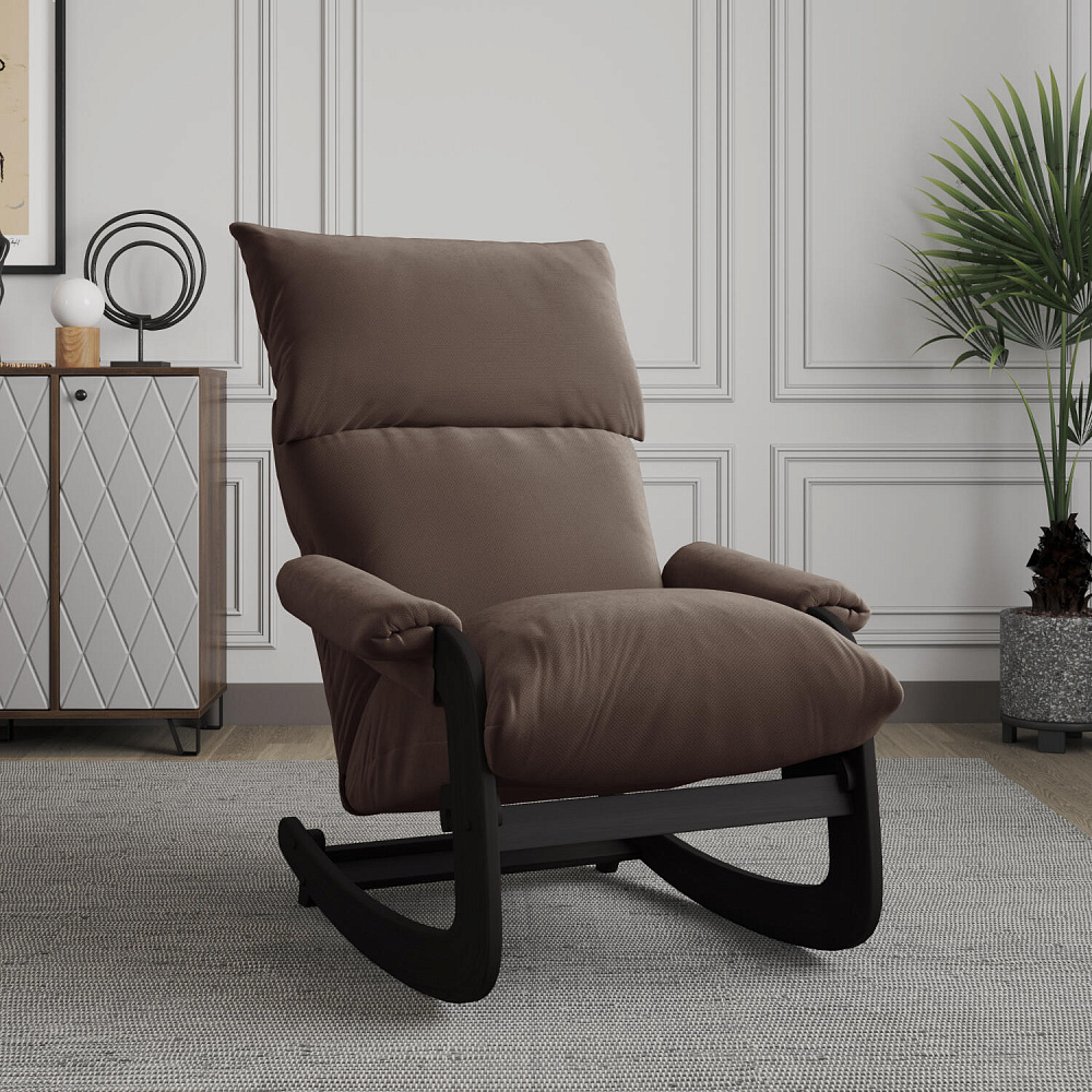 Мягкое кресло-качалка «Тиволи» с регулировкой угла наклона создаст уютное место для отдыха как в квартире, так и в загородном доме. Элегантный дизайн модели отличается объемными формами спинки и сиденья, компактными подлокотниками и лакированным каркасом. Обивка выполнена из плотного и приятного на ощупь велюра. За счет простого откидного механизма, спинка может принять полугоризонтальное положение для более комфортного отдыха.
