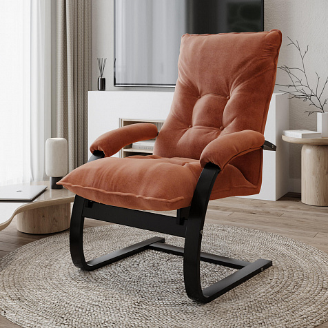 Мягкое кресло «Бари» поможет создать уютный уголок для расслабления как в квартире, так и в загородном доме. Лаконичный дизайн модели отличается изогнутыми опорами и декоративными утяжками на спинке. Обивка выполнена из приятного на ощупь велюра. Кресло можно откинуть для более комфортного отдыха. Благодаря фанерному каркасу кресло приятно пружинит и в то же время выдерживает большие нагрузки.