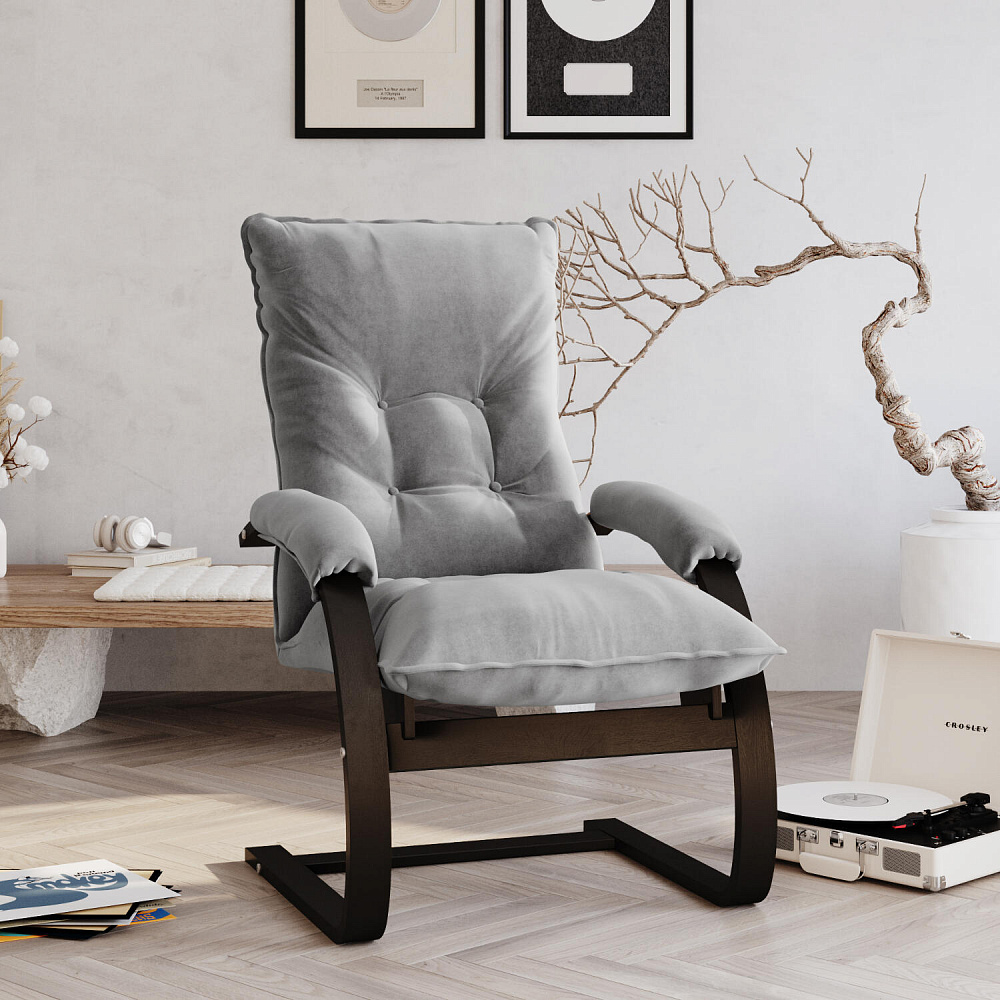 Мягкое кресло «Бари» поможет создать уютный уголок для расслабления как в квартире, так и в загородном доме. Лаконичный дизайн модели отличается изогнутыми опорами и декоративными утяжками на спинке. Обивка выполнена из приятного на ощупь велюра. Кресло можно откинуть для более комфортного отдыха. Благодаря фанерному каркасу кресло приятно пружинит и в то же время выдерживает большие нагрузки.