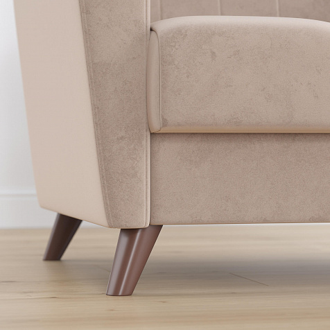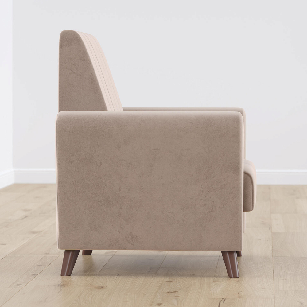 Изящный минимализм в формах кресла «Эссен» позволяет использовать его в различных интерьерных решениях. Элегантные высокие ножки и декоративная строчка на обивке добавляют изысканности.