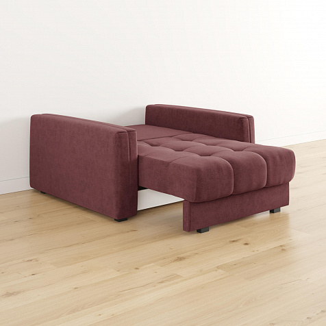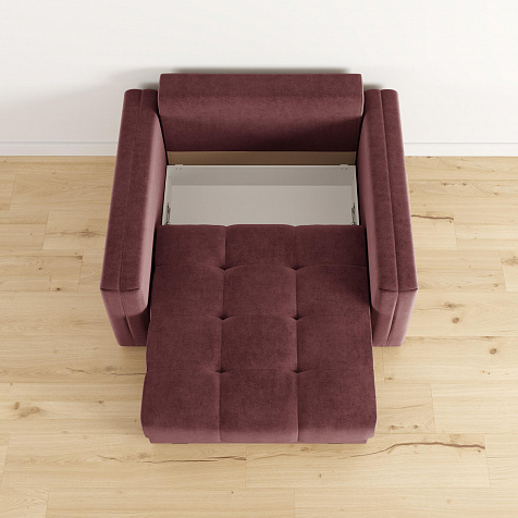 - Обивка из велюра. Обивка кресла-кровати выполнена из стильной и приятной на ощупь ткани, которая отлично пропускает воздух, хорошо тянется, устойчива к истиранию и выцветанию.