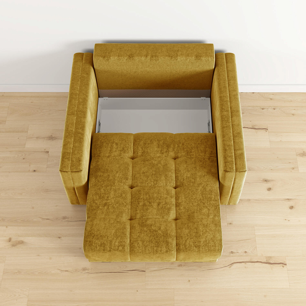 - Обивка из велюра. Обивка кресла-кровати выполнена из стильной и приятной на ощупь ткани, которая отлично пропускает воздух, хорошо тянется, устойчива к истиранию и выцветанию.