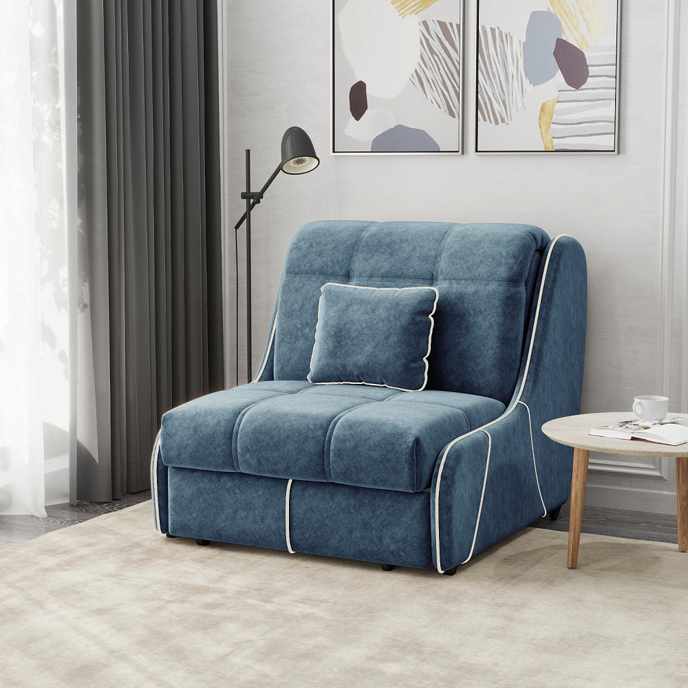 Кресло-кровать «Бонн» — лучшее сочетание компактности и функциональности. Благодаря отсутствию подлокотников оно не займет много места в комнате. С помощью удобного механизма трансформации «Аккордеон» кресло легко превращается в односпальную кровать с ровным спальным местом. Плавность форм и лаконичность модели подчеркивают акцентные линии декоративного канта.