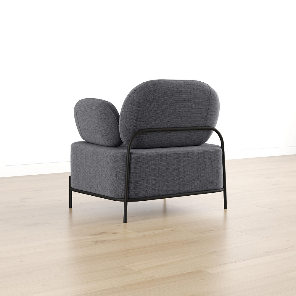Зонирование пространства. Обратная сторона спинки выполнена в обивочной ткани. Кресло можно разместить как вплотную к стене, так и в центре комнаты, разделяя ее на разные зоны.