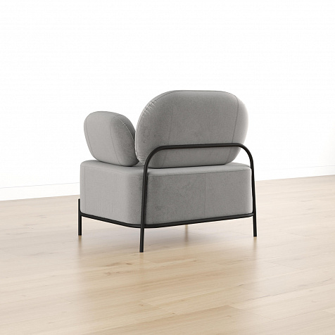 Зонирование пространства. Обратная сторона спинки выполнена в обивочной ткани. Кресло можно разместить как вплотную к стене, так и в центре комнаты, разделяя ее на разные зоны.