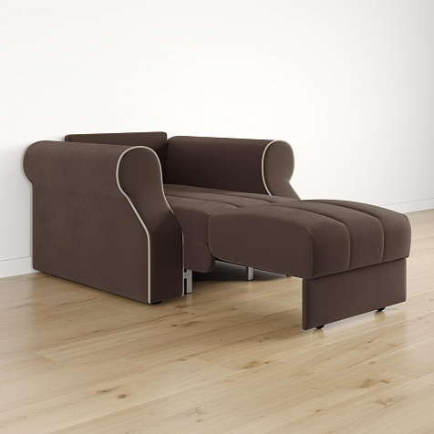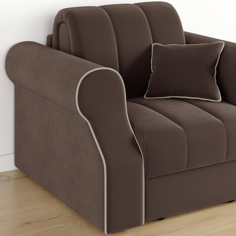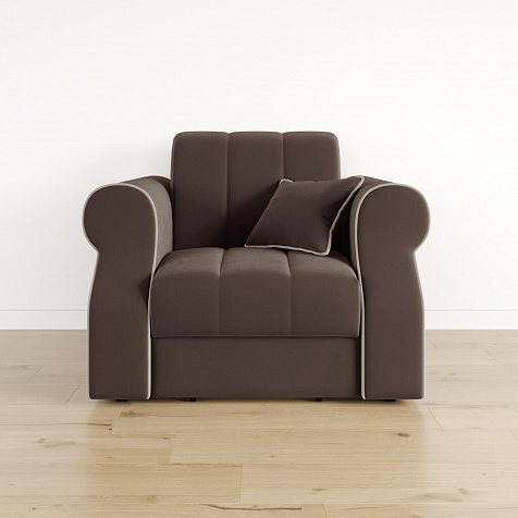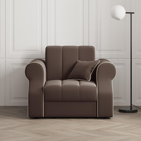 Кресло-кровать «Париж» придётся по душе ценителям стильной и функциональной мебели. Мягкое кресло с удобными подлокотниками и глубоким сиденьем позволит максимально расслабиться после тяжёлого дня. Благодаря простому в использовании механизму трансформации «Аккордеон», кресло легко превращается в односпальную кровать с ровным спальным местом. Плавность форм и лаконичность модели подчеркивают акцентные линии декоративного канта.