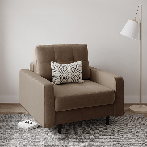 Мягкое кресло «Маас» — лаконичное сочетание стиля и комфорта. Глубокая посадка и приспинная подушка помогут создать удобное место для отдыха. Благодаря тому, что задняя часть спинки выполнена в основной обивочной ткани, кресло можно свободно размещать в пространстве комнаты. Модель не перегружена декором, поэтому подойдёт к большинству современных интерьеров.