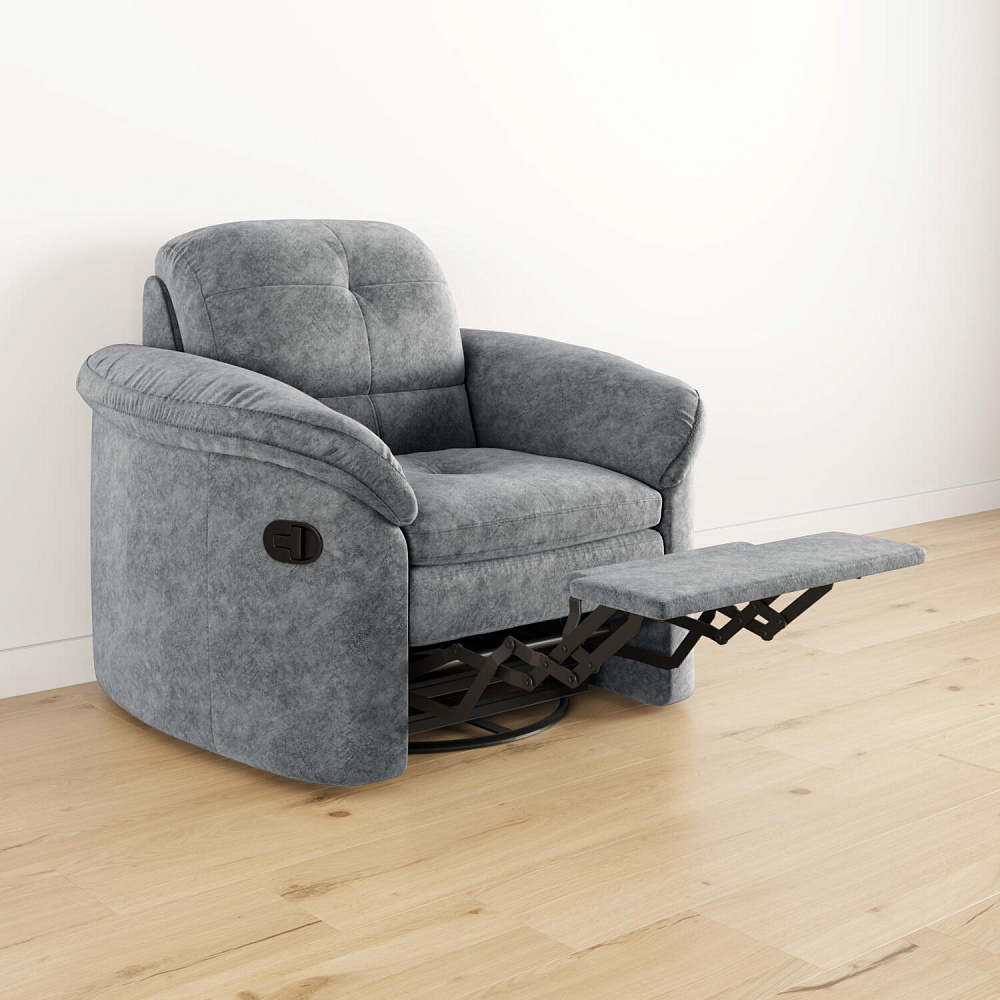 Идеальное место для отдыха - кресло «Коннери» с современным механизмом «Глайдер» от компании «LEGGET & PLATT», который превращает обычное кресло в кресло-качалку или раскладывает его в положение «релакс». Такая реализация обеспечивает максимальный комфорт и подходит для ежедневного использования. Режим «кресло-качалка» позволяет поворачивать кресло на 360 градусов, но отключается при его раскладывании. Положение кресла меняется с помощью небольшого усилия при поднятии рычага, находящегося на подлокотнике, и надавливании на спинку. При опускании спинки выдвигается удобная подставка для ног.
