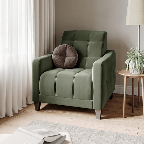 Возможность зонирования пространства. Задняя сторона спинки выполнена в основной обивочной ткани. Кресло будет аккуратно смотреться как у стены, так и в центре комнаты.