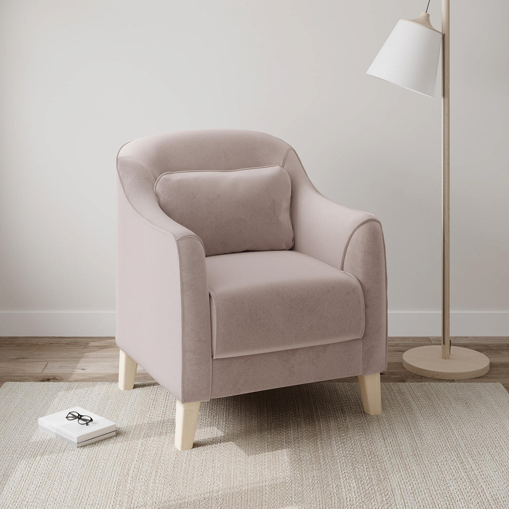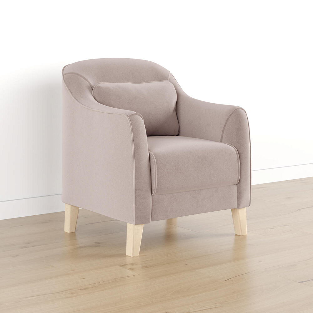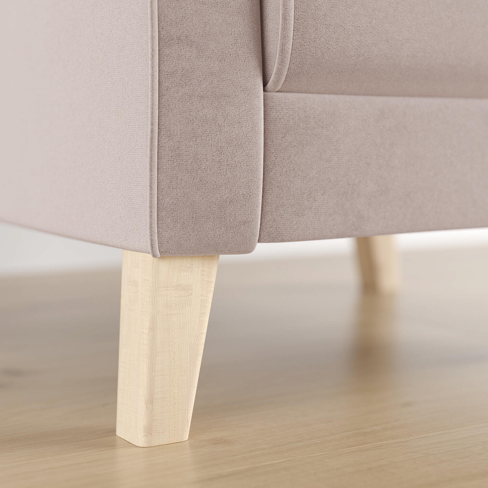 - Деревянные опоры. Высокие ножки из массива березы визуально облегчают конструкцию и открывают доступ к уборке пространства под креслом.