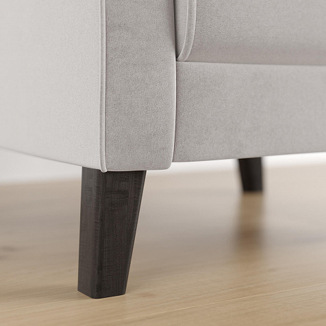 - Деревянные опоры. Высокие ножки из массива березы визуально облегчают конструкцию и открывают доступ к уборке пространства под креслом.