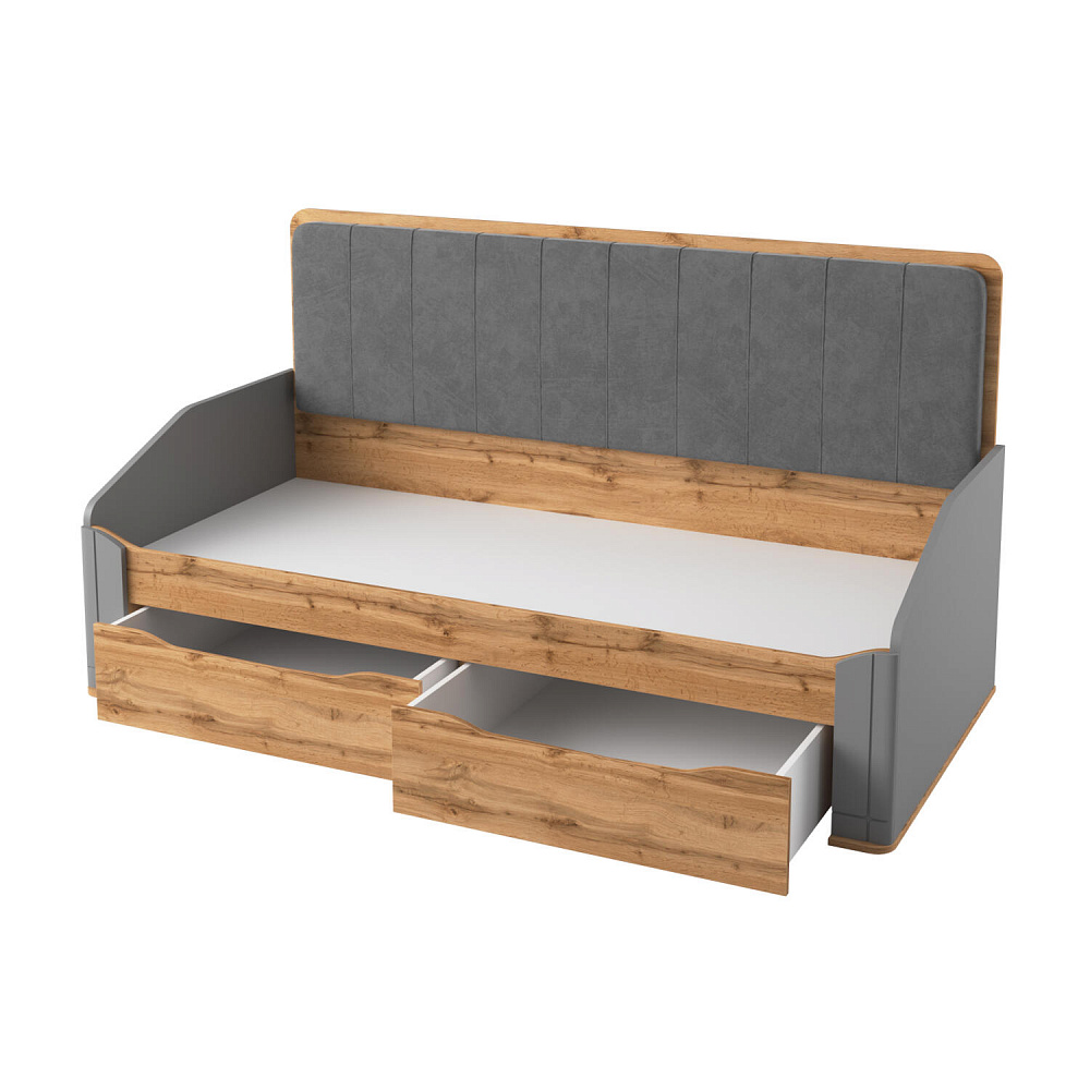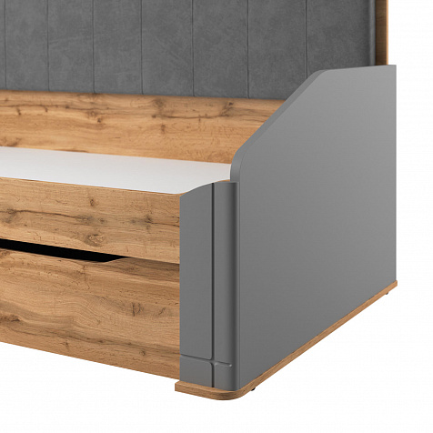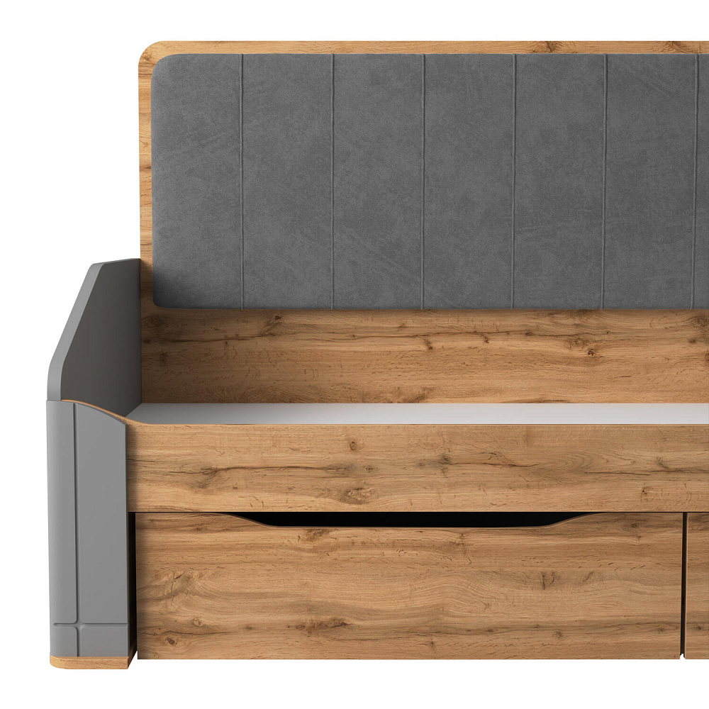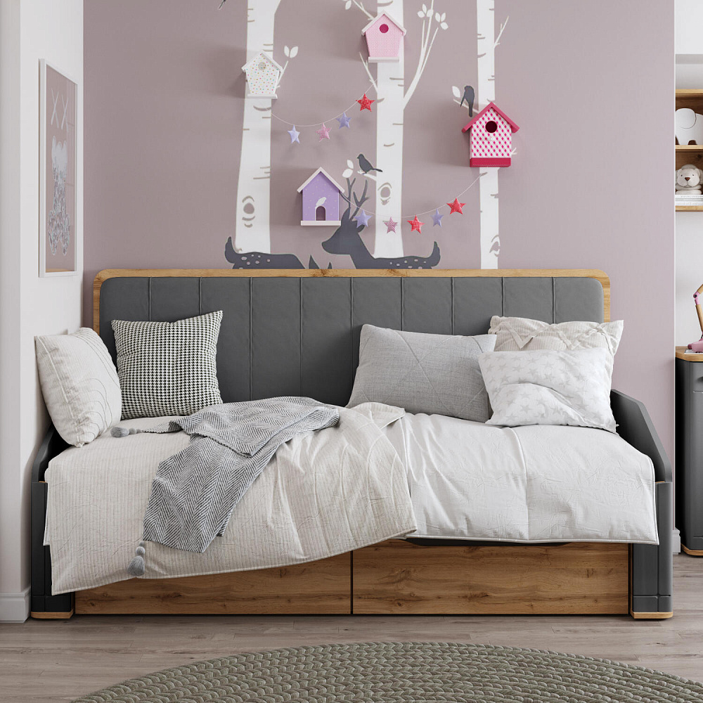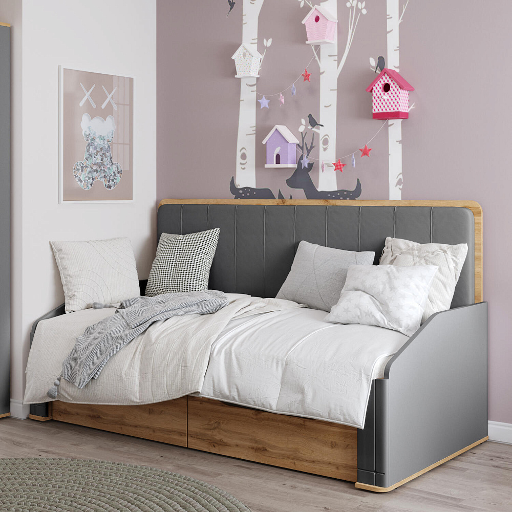 Кровать с мягкой спинкой «Кассия» подарит ребёнку прекрасные моменты отдыха и самые сладкие сны. Продуманные размеры спального места при наличии удобного матраса обеспечат максимальный комфорт и удобство, а выдвижные ящики помогут компактно разместить постельное бельё.