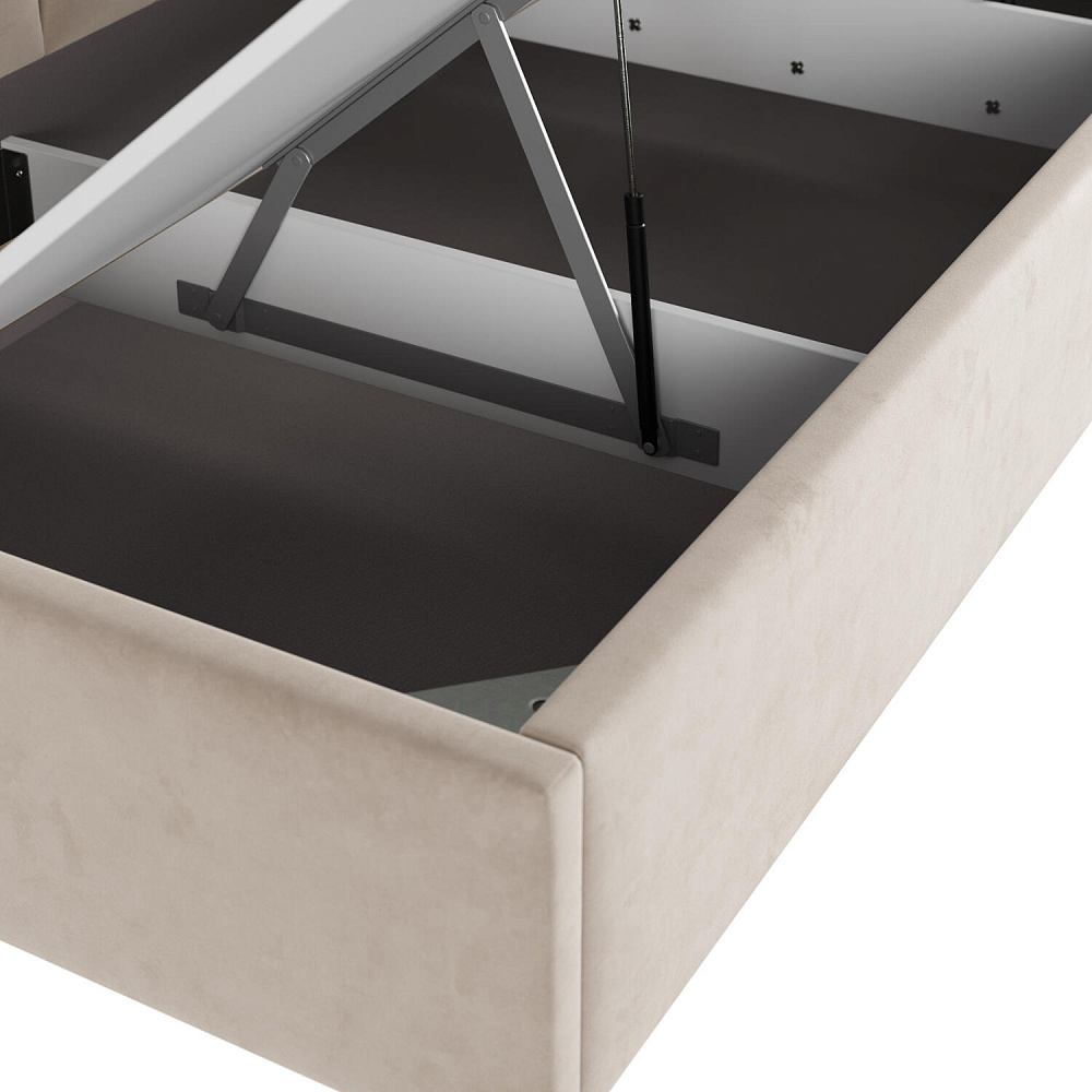 - Удобный доступ к коробу. Механизм легко поднимает и опускает основание кровати вместе с матрасом благодаря газлифтам.