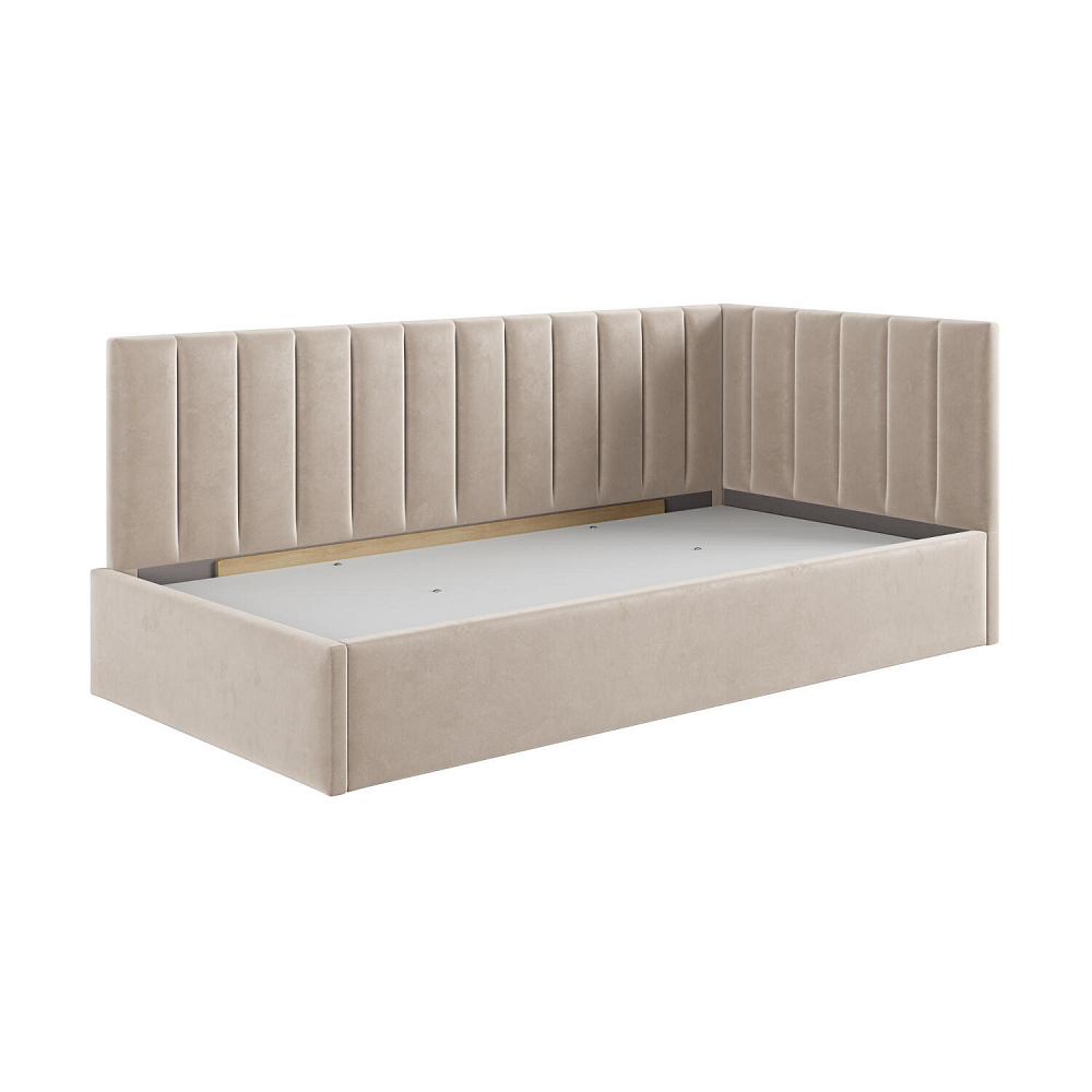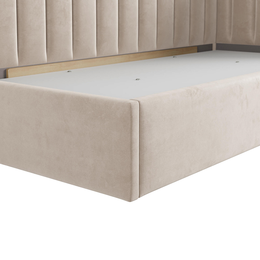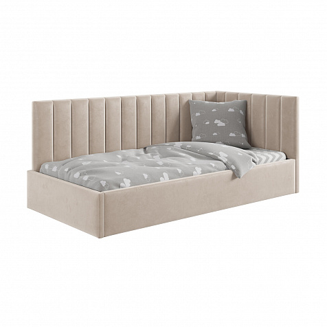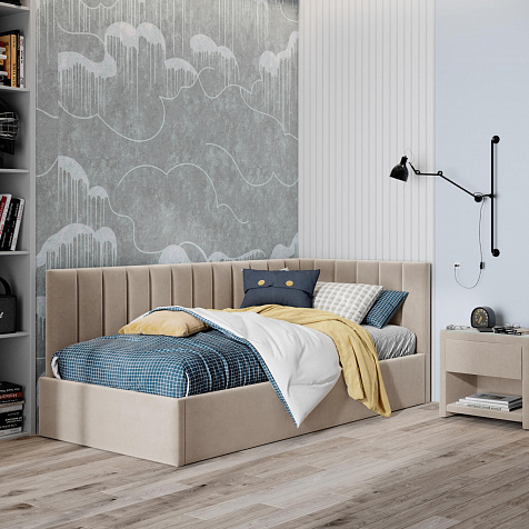 Односпальная кровать «Трино» — сочетание уюта и комфорта в современном дизайне. Спинка Г-образной формы в мягком велюре украшена декоративной вертикальной стежкой, что станет акцентом в интерьере подростковой комнаты.