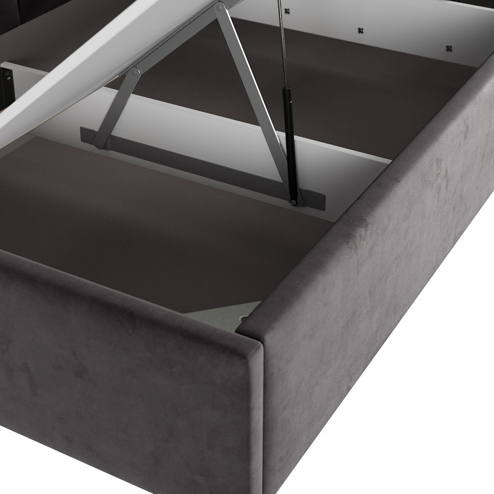 - Удобный доступ к коробу. Механизм легко поднимает и опускает основание кровати вместе с матрасом благодаря газлифтам.
