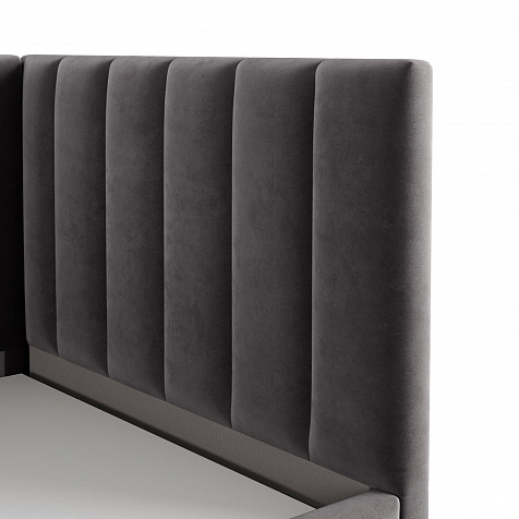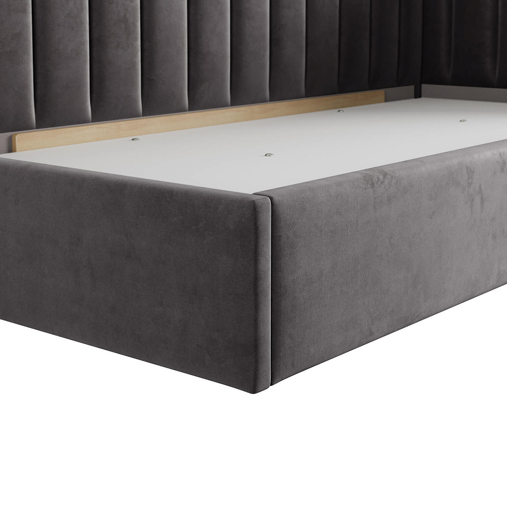 Односпальная кровать «Трино» — сочетание уюта и комфорта в современном дизайне. Спинка Г-образной формы в мягком велюре украшена декоративной вертикальной стежкой, что станет акцентом в интерьере подростковой комнаты.