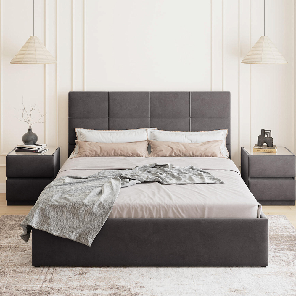 Кровать «Мальва» — универсальная модель в минималистическом стиле с геометрической стёжкой. Строгий и изящный дизайн модели станет ярким элементом в интерьере вашей спальни. Благодаря просвету под боковыми царгами будет удобно подходить и заправлять кровать.