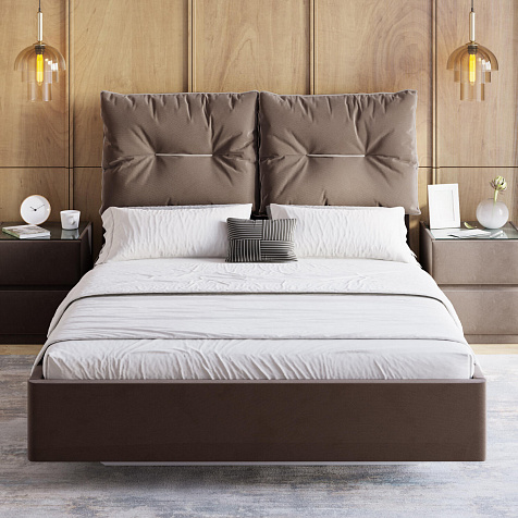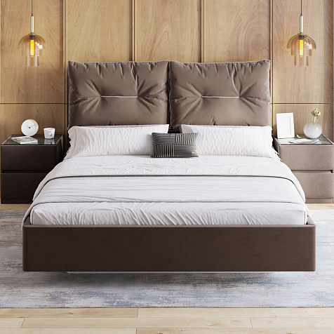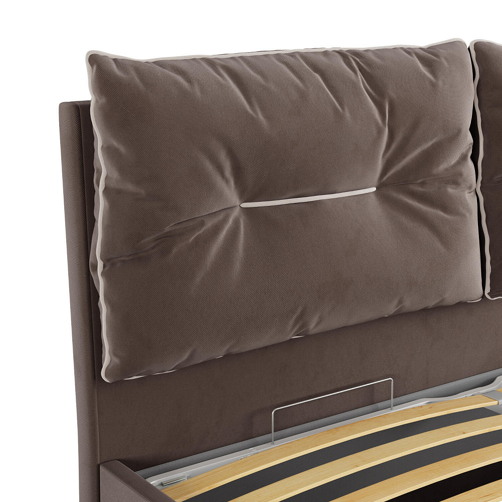 Кровать «Санремо» со съёмными подушками на изголовье — уютнейший вариант оформления спальни. Контрастный кант и внутренний шов придают подушкам дополнительный объем. При необходимости подушки легко снимаются, ведь они крепятся к изголовью на липучках. «Санремо» подарит невероятный комфорт и уют своим владельцам.