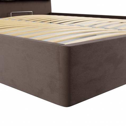 Мягкая обивка. Кровать выполнена в нежнейшем, приятном на ощупь велюре, который обладает высокой механической прочностью.