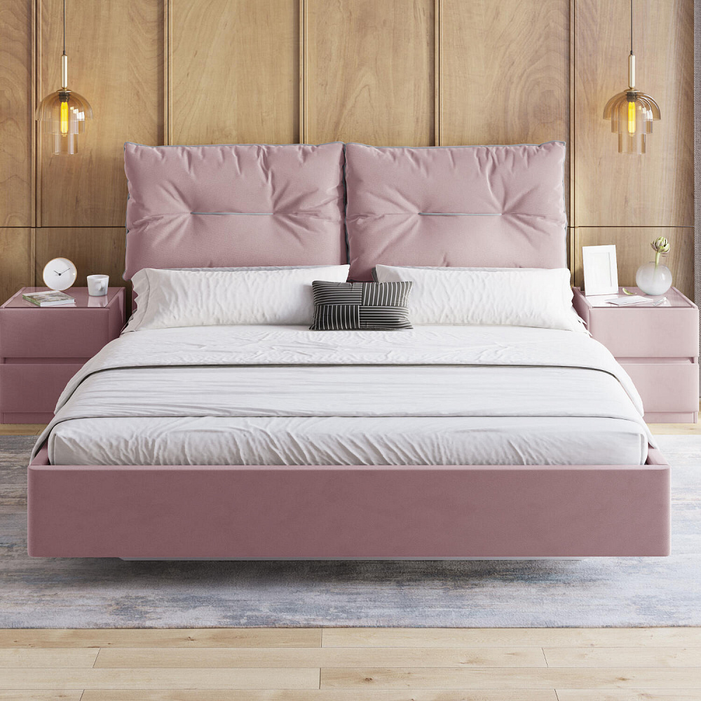 Кровать «Санремо» со съёмными подушками на изголовье — уютнейший вариант оформления спальни. Контрастный кант и внутренний шов придают подушкам дополнительный объем. При необходимости подушки легко снимаются, ведь они крепятся к изголовью на липучках. «Санремо» подарит невероятный комфорт и уют своим владельцам.