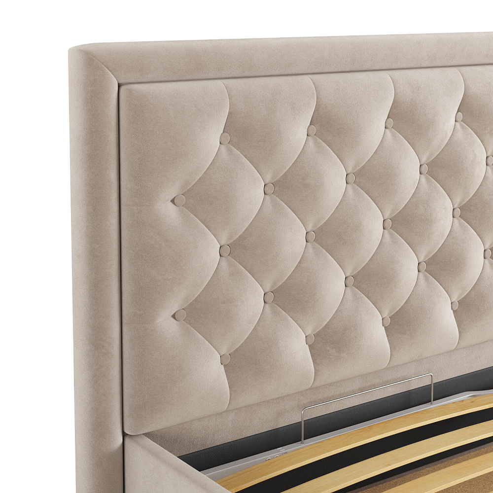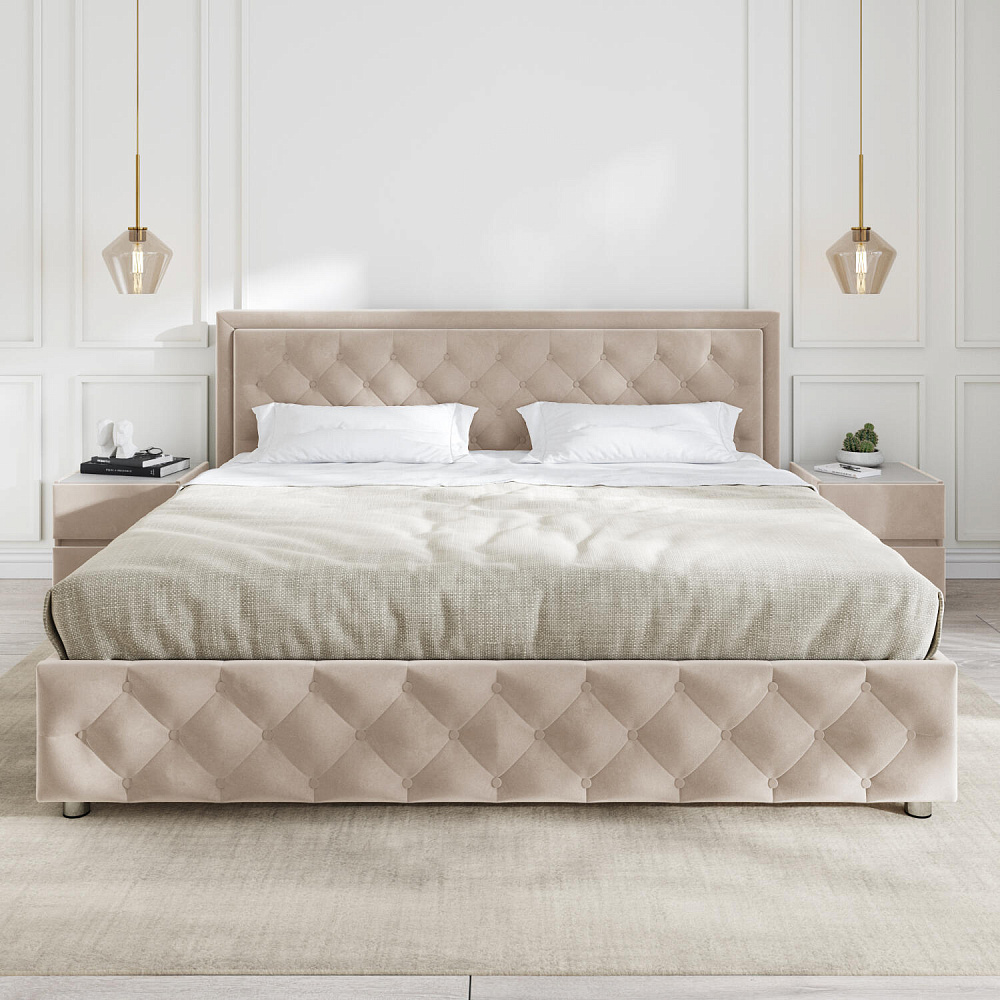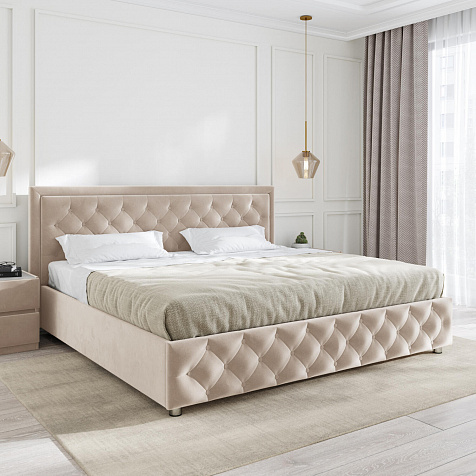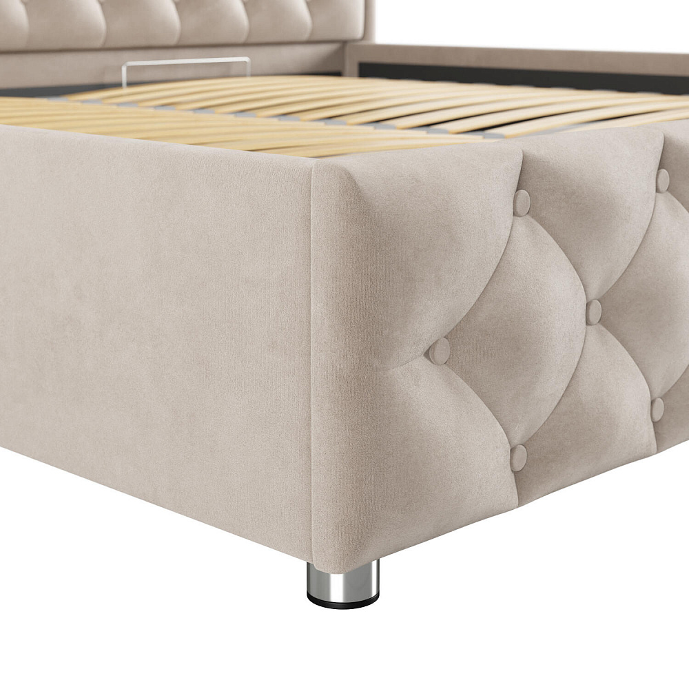 Мягкая кровать «Габриэла» с запоминающимся рельефным декором преобразит интерьер спальни. В модели гармонично сочетаются классический стиль и современные материалы. Помимо широкого спального места кровать оснащена бельевым ящиком, что поможет освободить пространство спальни для новых вещей.