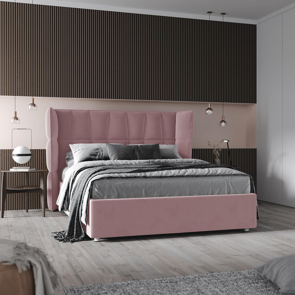 Мягкая кровать «Дарина» станет центральным местом местом современной спальни благодаря оригинальному дизайну. Высокое мягкое изголовье со стежкой в форме трапеций преобразит интерьер спальни и создаст комфортную зону для чтения и просмотра кино. Кровать поможет сэкономить пространство комнаты за счет вместительного бельевого короба под решеткой. Надежное основание и правильно подобранный матрас обеспечат необходимый уровень комфорта для здорового сна и отдыха.