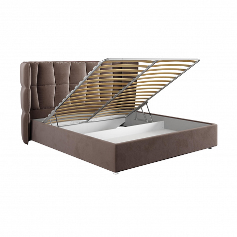 Мягкая кровать «Дарина» станет центральным местом местом современной спальни благодаря оригинальному дизайну. Высокое мягкое изголовье со стежкой в форме трапеций преобразит интерьер спальни и создаст комфортную зону для чтения и просмотра кино. Кровать поможет сэкономить пространство комнаты за счет вместительного бельевого короба под решеткой. Надежное основание и правильно подобранный матрас обеспечат необходимый уровень комфорта для здорового сна и отдыха.