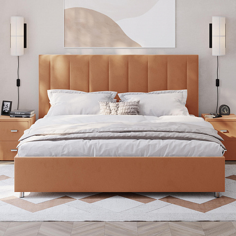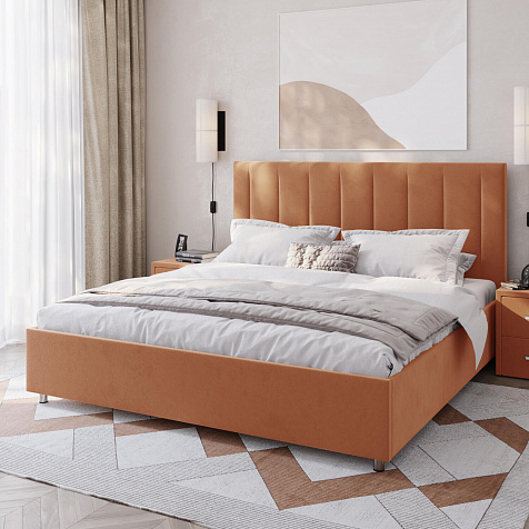 Мягкая кровать «Альфа» будет смотреться в интерьере спальни стильно и лаконично. Высокое изголовье модели украшено вертикальными строчками. Ортопедическое основание и правильно подобранный матрас обеспечат комфортный отдых и здоровый сон.