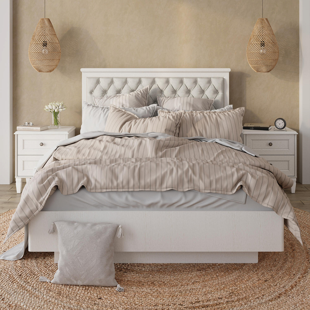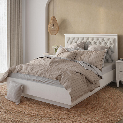 Лаконичный образ кровати «Мелисса» задаст настроение спальне в стиле прованс. Одна из главных особенностей модели – мягкое изголовье с каретной стяжкой из приятного на ощупь бархатистого велюра. Светлые тона и парящие опоры привнесут в пространство комнаты легкости и света, а ненавязчивый дизайн покорит своим скромным очарованием. Ортопедическое основание и правильно подобранный матрас обеспечат полноценный отдых и качественный сон после продуктивного дня.