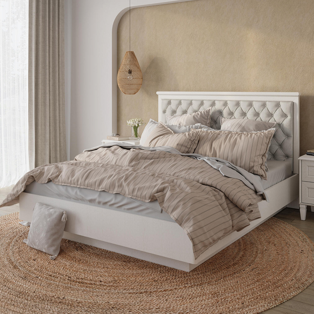 Лаконичный образ кровати «Мелисса» задаст настроение спальне в стиле прованс. Одна из главных особенностей модели – мягкое изголовье с каретной стяжкой из приятного на ощупь бархатистого велюра. Светлые тона и парящие опоры привнесут в пространство комнаты легкости и света, а ненавязчивый дизайн покорит своим скромным очарованием. Ортопедическое основание и правильно подобранный матрас обеспечат полноценный отдых и качественный сон после продуктивного дня.