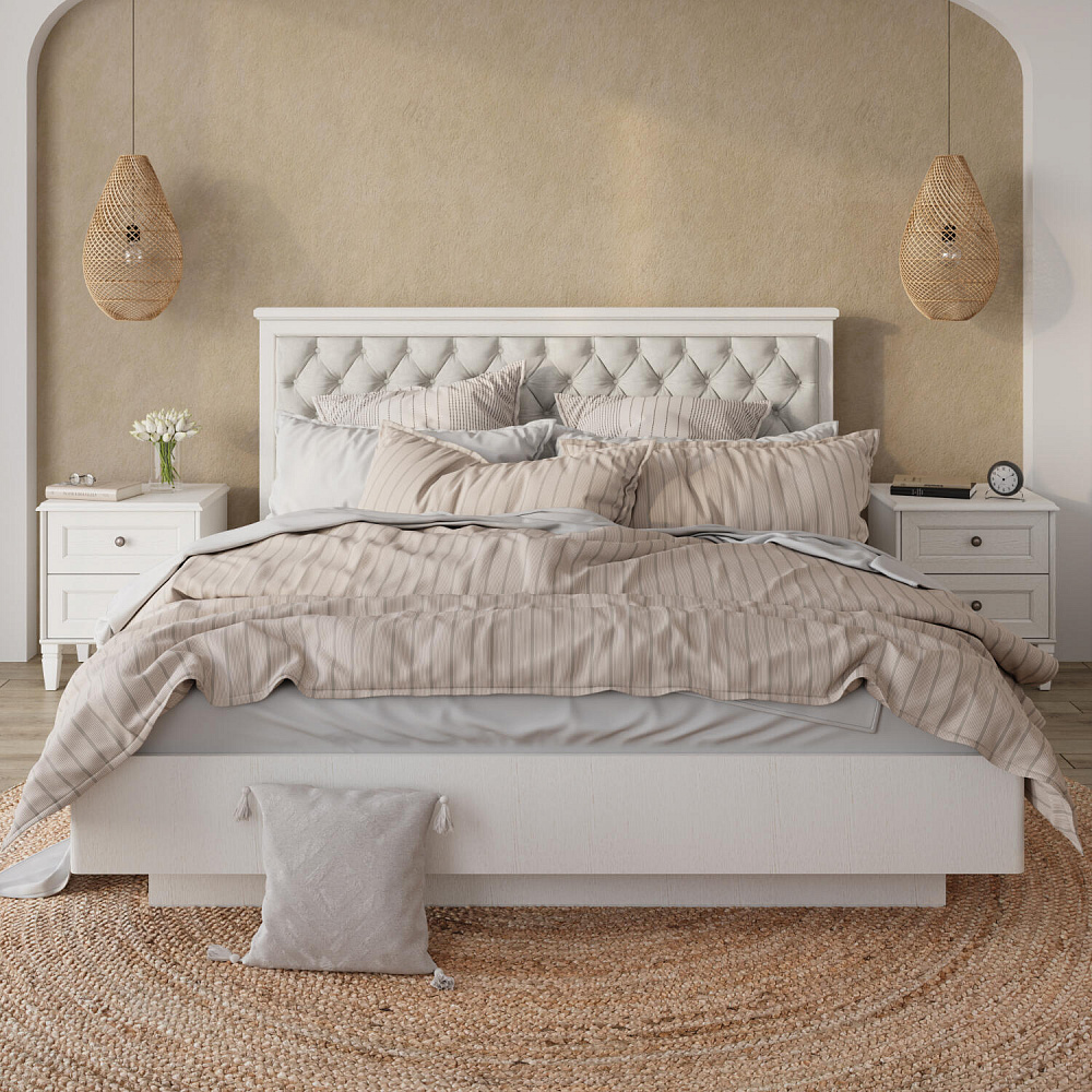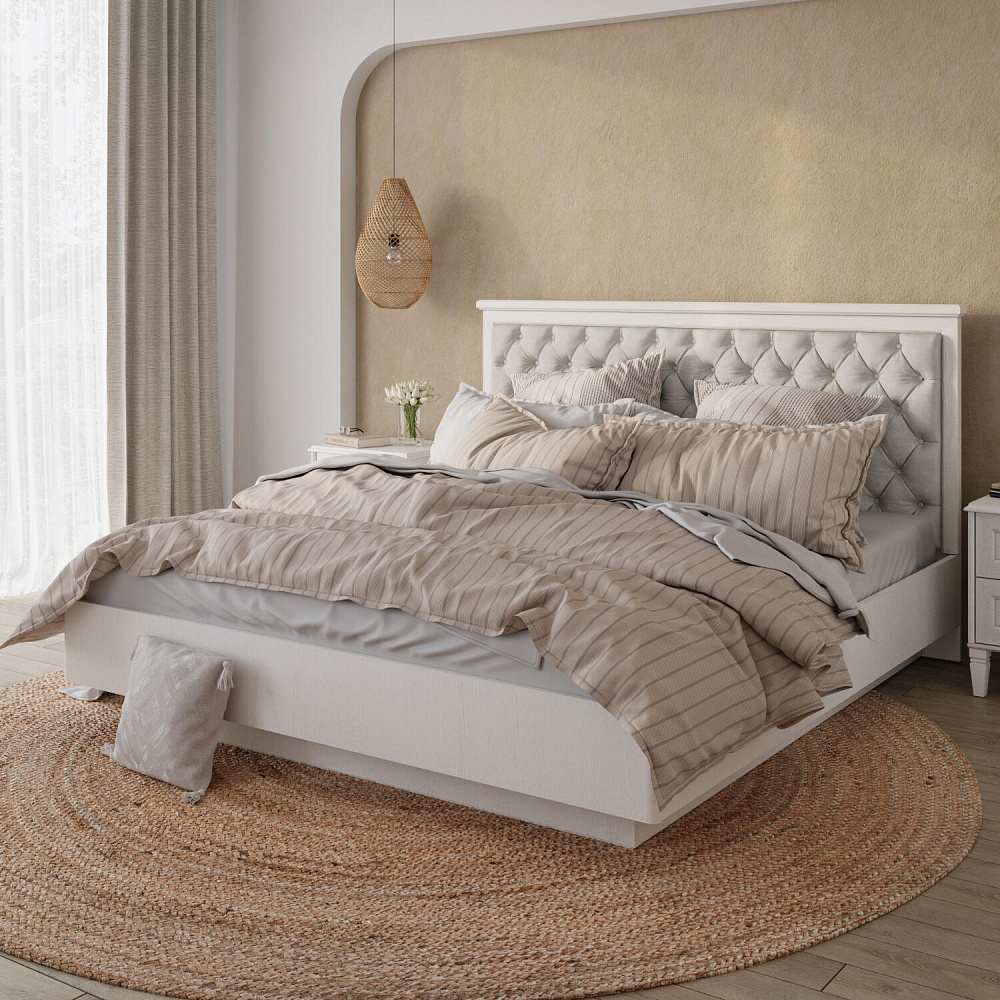 Лаконичный образ кровати «Мелисса» задаст настроение спальне в стиле прованс. Одна из главных особенностей модели – мягкое изголовье с каретной стяжкой из приятного на ощупь бархатистого велюра. Светлые тона и парящие опоры привнесут в пространство комнаты легкости и света, а ненавязчивый дизайн покорит своим скромным очарованием. Ортопедическое основание и правильно подобранный матрас обеспечат полноценный отдых и качественный сон после продуктивного дня.
