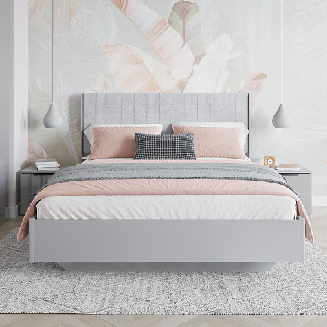 Лаконичный дизайн кровати «Адажио» точно придется по вкусу ценителям минимализма и светлых оттенков. Элегантный базовый серый цвет никогда не выйдет из моды, поэтому такая мебель может прослужить долгие годы и даже подстраиваться под изменения в интерьере спальни. Изголовье из воздушной ткани букле подарит не только непревзойденный комфорт для отдыха и сна, но и добавит пространству комнаты стильный акцент.