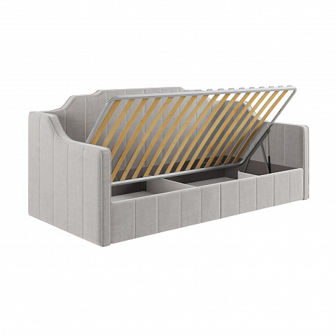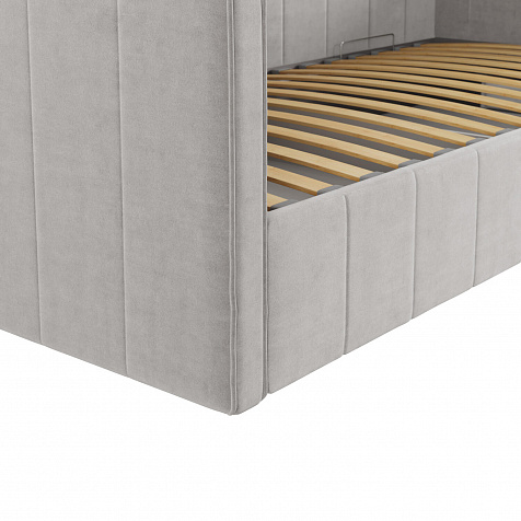 - Удобный доступ к коробу. Механизм легко поднимает и опускает основание кровати вместе с матрасом благодаря газлифтам.