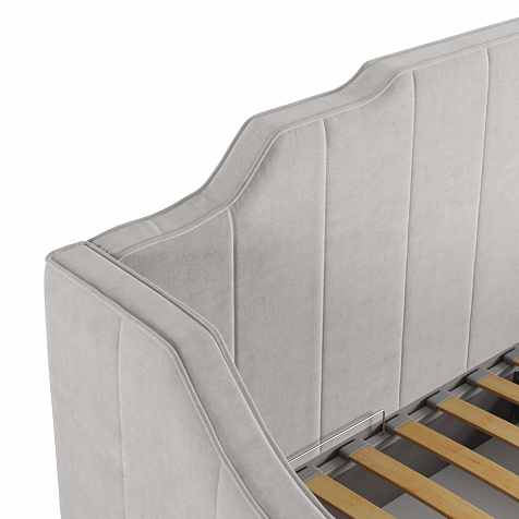 - Мягкие спинка и изголовье резной формы. Удобная деталь для отдыха сидя, чтения книг и просмотра фильмов. Оригинальный дизайн и формы украсят пространство комнаты.